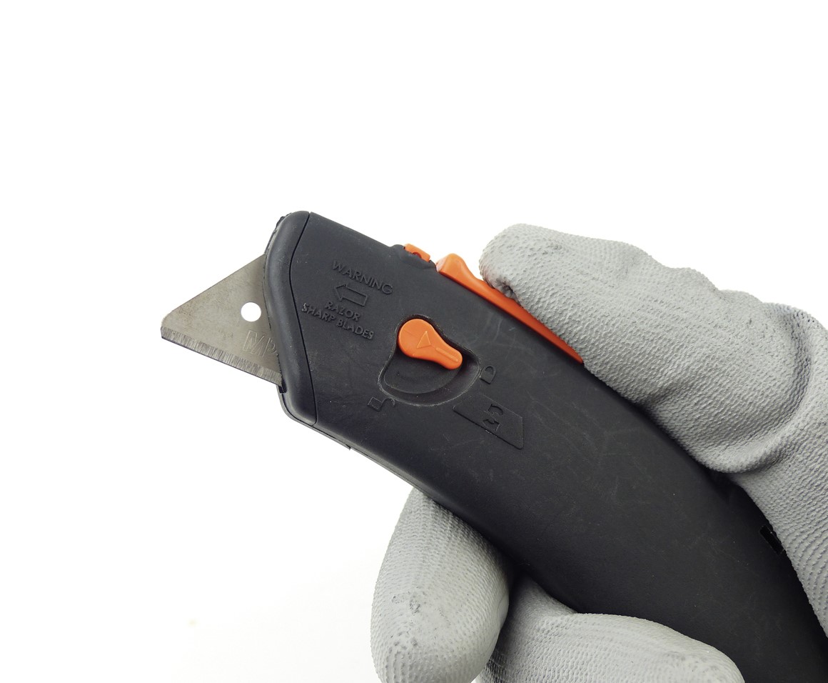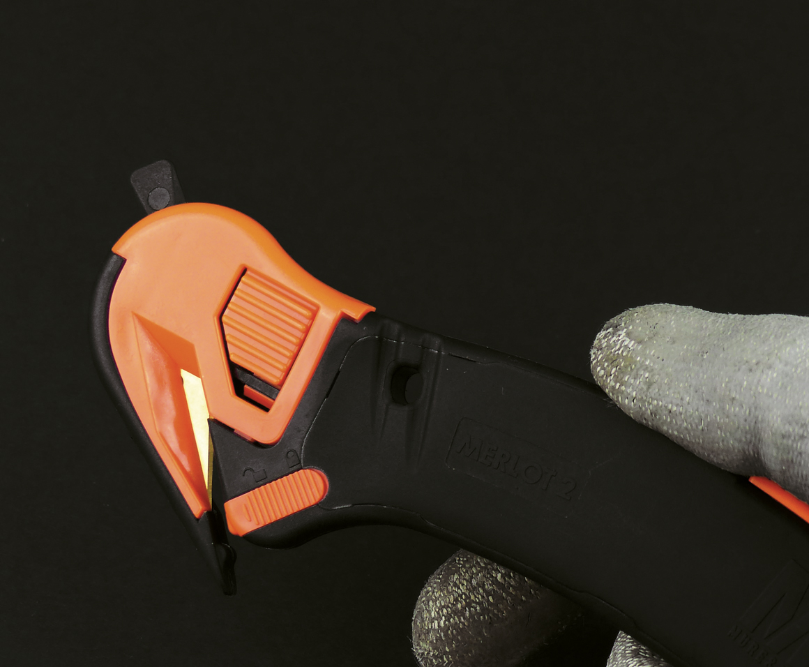 - auf der einen Seite mit einziehbarer Klinge, auf der anderen Seite zum Schneiden von Folien und